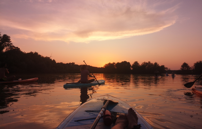Majd ezt követően vízre szállunk, hogy legkésőbb 21.30-ra elérjük a gyülekező pontot, ahonnan ez az egészen különleges, bolondos felvonulás a létező mindenféle vízieszközzel elindul majd. Csapatunk a SUP szekciót fogja erősíteni, de lesznek résztvevők sárkányhajóval, kajakkal, kenuval, stb.